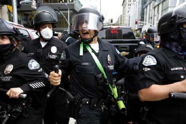 ロサンゼルスでのデモ隊に対峙する警官たち(米Deadlineのtwitterより)